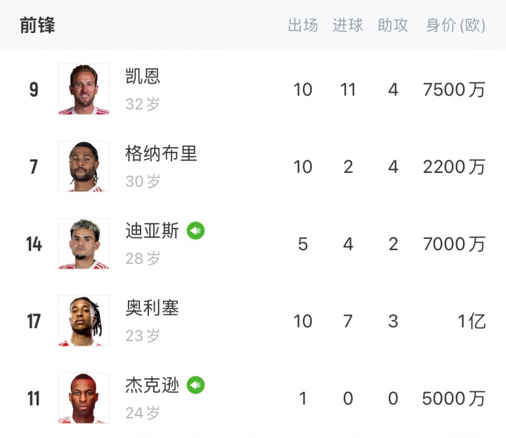 năm người chơi của Bayern ở tiền tuyến ↓ (không bao gồm Musiara)